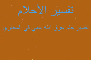 حلمت بأن أبنة عمي غرقت في بالوعه مجاري وانا كنت واقفة عند النافذة الشباك فرأيتها تغرق فقمت بالصراخ لاخاها لانقاها واخاها اسمه وإن المجاري عميقه تؤدي عمقها مسافه متوسطه تبعد من الرئيسي إلى بيتنا