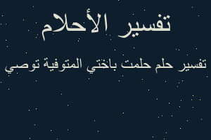 السلام عليكم حلمت باختي المتوفية انزلها الله منزلة الشهداء توفيت اختي مبطونه توصيني ببنتها وتقول لا تنسى بنتي