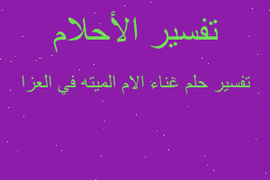 رأيت أمي المتوفيه في عزاء قريب من الحقل وأهل أمي وهي تغني في العزاء وانا اتشاجر معها واقول لها ما الذي تفعليه انتي تغني ونحن في العزاء وتستمر في الغناء ورأيت اولاد خالي جالسين في الشارع وقاعدين على حصيرة وياكلون ويشاهدون التلفاز وقلت لهم أي اللي أمي بتعمله ده فقالو لي اذهب لها مرة اخري فذهبت لها وما زالت تستمر في الغناء وتشاجرت معها مرة اخري اقول لها انتي بتعملي كده لي