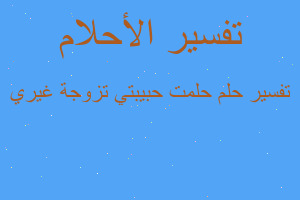 حلمت ان حبيبتي تزوجة وكانت الحفلة في منزل جدتي الولد الذي كان زوجوها في الان اعرفه في الواقع هوا زوج صديقتها وفي الكنت كاني متفق معها على هذا زواج لا افهم كيف اقترب الحفل من نهاية ودخلت الغرفة كي تغير ملابسها وتدهب مع زوجها بدأة انا بلبكاء شعرة اني خسرتها رأيت امي و اختي يبكون معي دخلت الى الغرفة ومسكت يدها اقول لها هيا ندهب بدأت تبكي شعرة انها تريد ان تقول لي لا استطيع دهاب معك شعرة اني فقدتها وهنا استيقظت