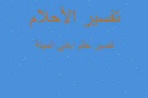 حلمت ان صوت رجل يقول لي هل تريدين مكان ابنتك اتبعيني فاتبعته و كنا نطير حتى وصلنا الى مكان جميل به اشجار و مياه مقسمة الى غرف بها ناس لا اعرفهم حتى أشار الى مكان ن به ابنتي الميتة فكانت تلبس لباس ابيض جالسة ترمي الماء على رجليها و هو يمر من تحتها