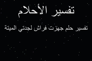 حلمت ان جدتي الميتة عادت إلى الحياة و انني قمت بتجهيز ثلاثة أسرة لها و سرير لي بجانبها ولكنه كان أعلى قليلا من أسرتها فقلت لها انني جهزت ثلاثة أسرة لكي تكون مرتاحة و يمكنها أن تتقلب براحتها و فوق كل سرير وضعت جهاز لابتوبولكن عندما كنت أجهز لها قمت بأخذ السرير الذي كانت مستلقية عليه عند موتها و نزعت عنه الغطاء لأنه كان متسخا و رائحته برائحة الموتى لكي تنام هي فيهالمكان الذي جهزت فيه الأسرة كان قربخارجمنزل عم أبى المهجور لكننا لم تنم في الأسرة و رايت ايضا انني قطفت بعض الازهار لاهديها إياها